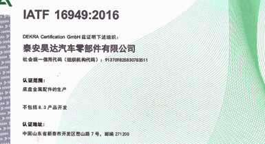公司擁有IATF16949:2016國際標(biāo)準(zhǔn)質(zhì)量管理體系認證,精良的設(shè)備、先進的生產(chǎn)工藝及完善的質(zhì)量檢測保證了公司產(chǎn)品的可靠品質(zhì)...